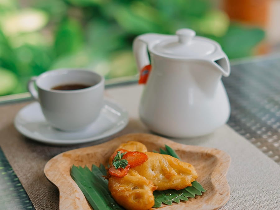 Enjoy a complimentary afternoon tea, specially prepared for our in-house guests. Each day features a selection of freshly made, traditional Balinese snacks that change daily, offering a delightful taste of local flavors in the Lumbini Restaurant.